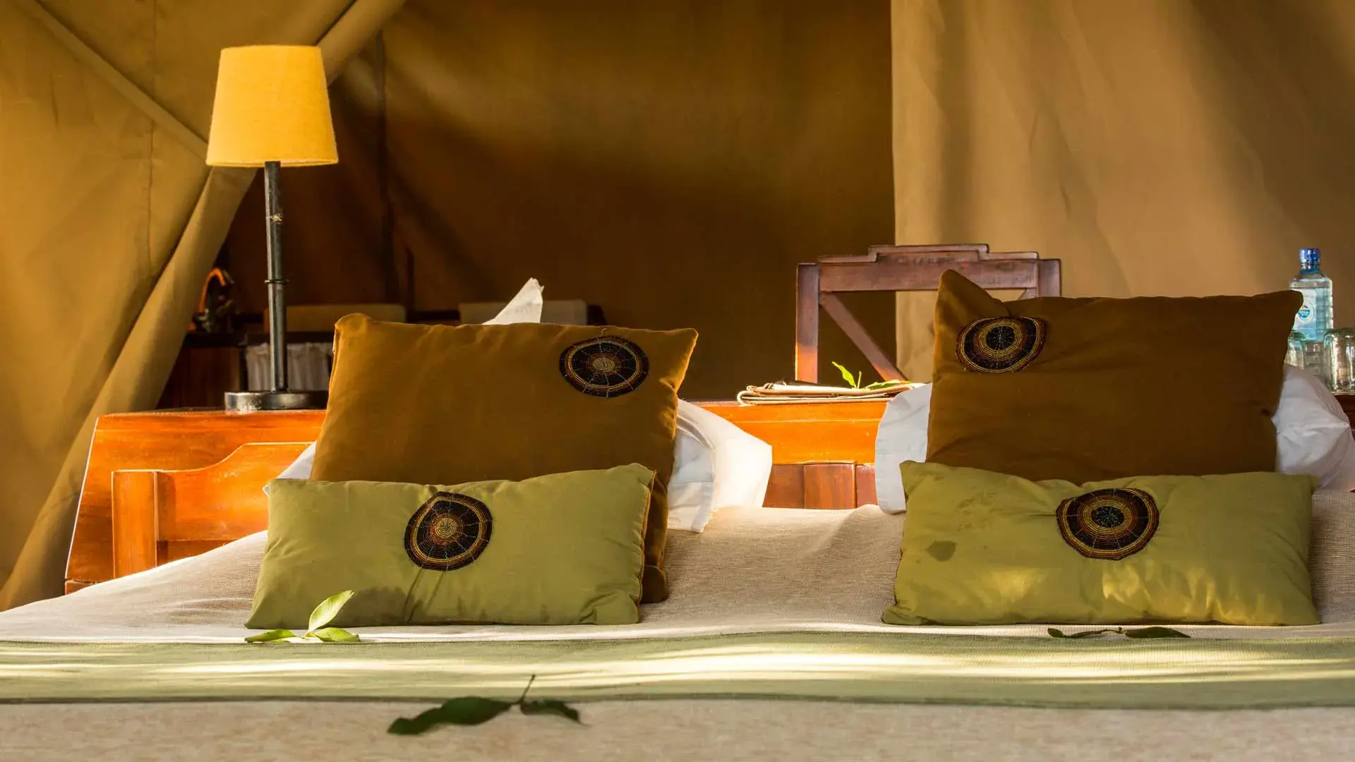 The camp features 22 spacious canvas tents, each positioned to enjoy uninterrupted views of the river. The main areas, including the restaurant, lounge, bar, and reception, are set on raised wooden decks and designed with a subtle nod to the style associated with Karen Blixen.