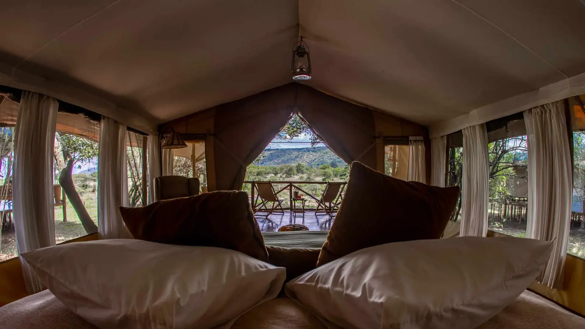Karen Blixen Camp is an eco-conscious tented camp set along the Mara River, offering a classic safari atmosphere with a comfortable and understated style.